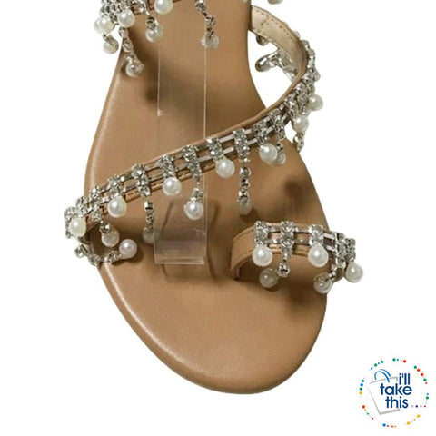 Our Gorgeous Chic Beach Sandals, a majestic array of pearls and sparkling crystals caress your feet with every movement. Grand enough for a beach wedding, or just for a special evening out!