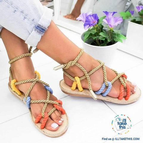 Natural Hemp Rope style Women's Flat Sandals, Flip flops - 6 Color Options