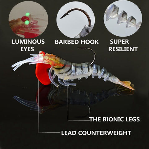 Theses Shrimp/Prawn Life-Like artificial Fishing Lures will attract those fish and with its lead weight balancing the pull through make these lures and the ideal addition to any tackle box.