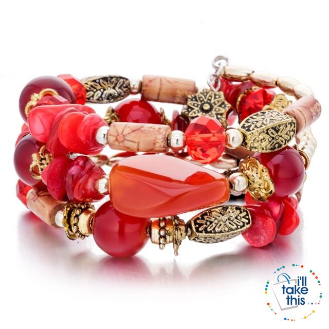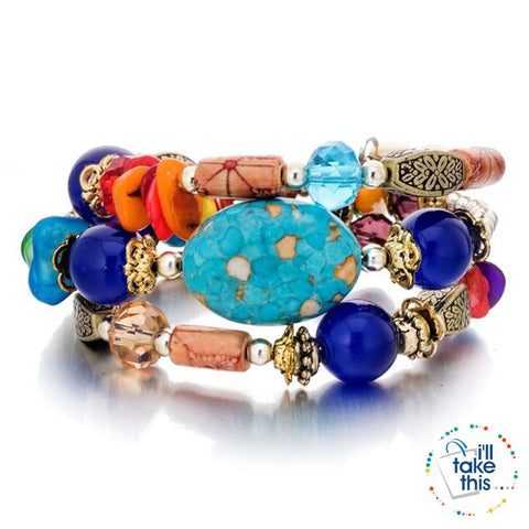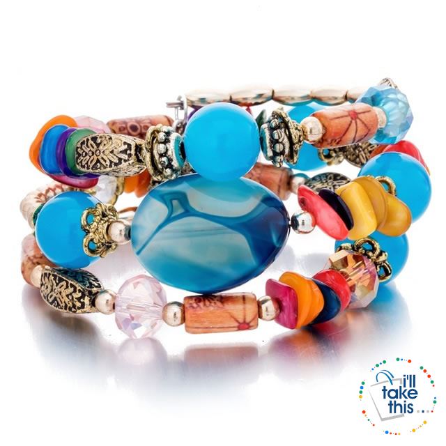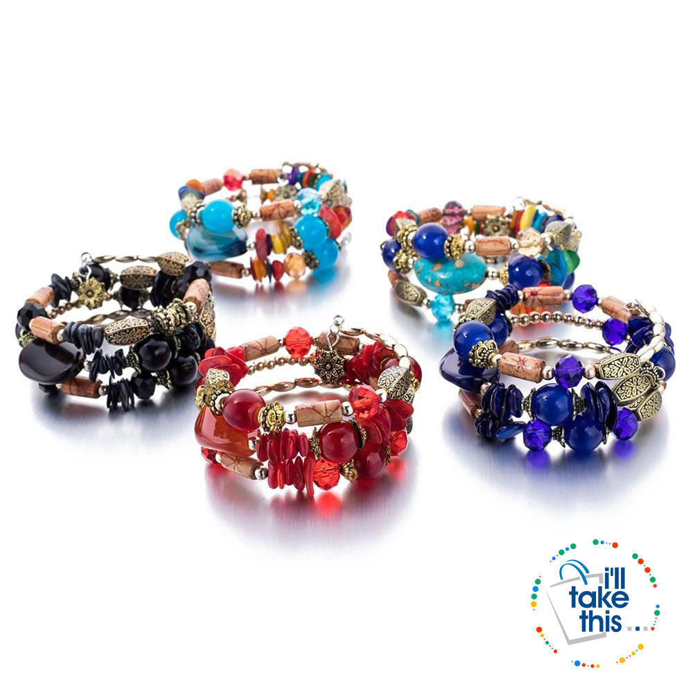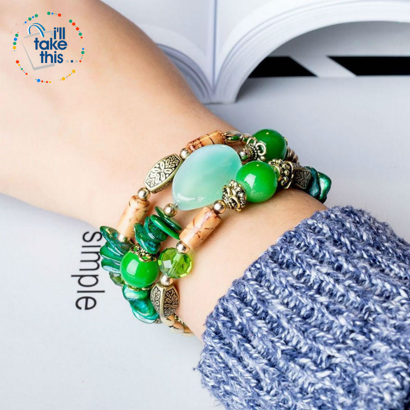 Bohemian Bead/Charm Bracelet Multi-layered, Designed to give a modern stacked Look, 9 Color Options