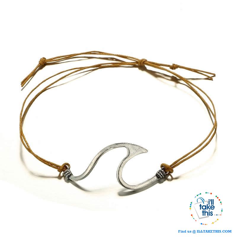 🌊Women's Gypsy/Boho Big Wave Bracelet with Adjustable brown rope