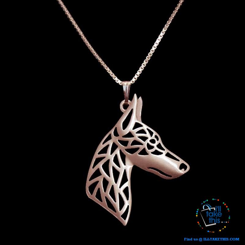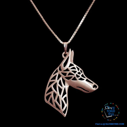 Doberman Dog Pendant in Rose Gold, Silver or Gold plating with BONUS Link chain with our compliance when you purchase with us