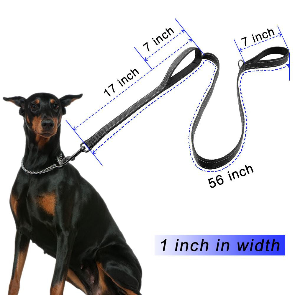 Dog Leash 56"/142cm - 2 Handles Black Nylon Padded Double Handle Leash