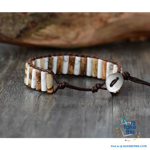 Handmade Natural Stone Single Leather weaved wrap bracelets