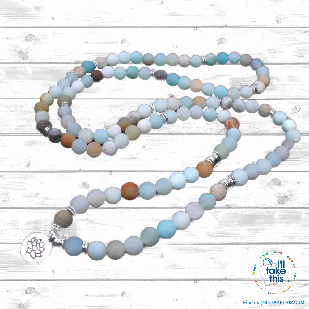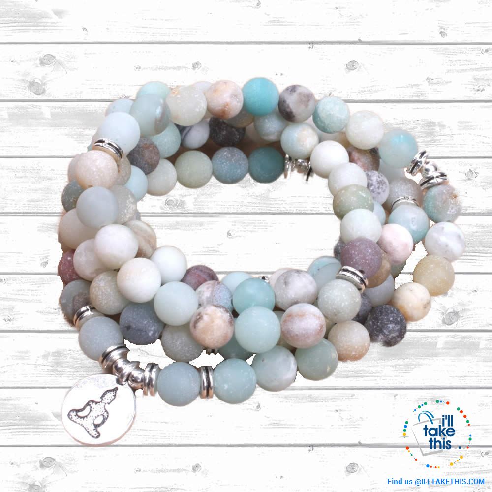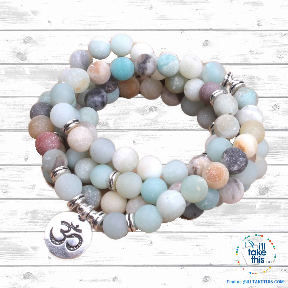 Natural stone handmade Necklace/Wrap bracelet matte frosted amazonite beads with Lotus, OM Charms