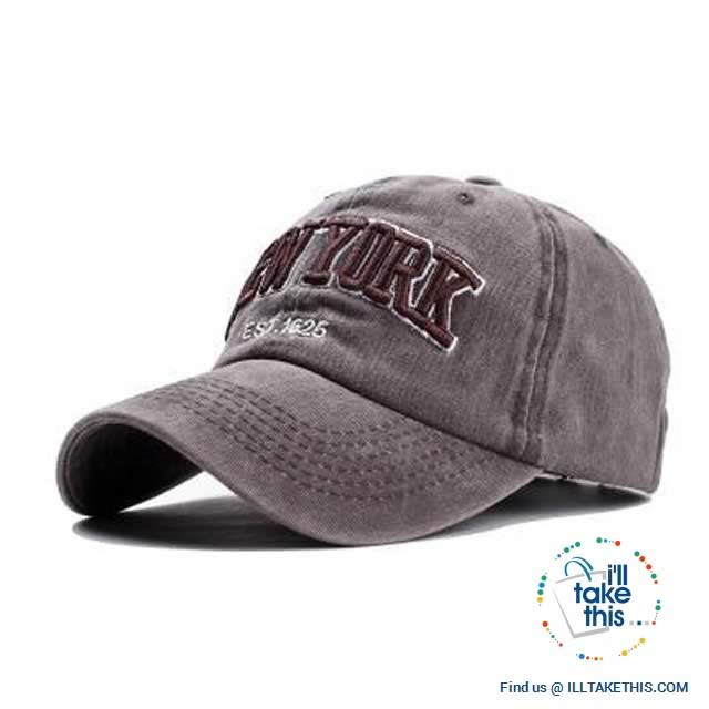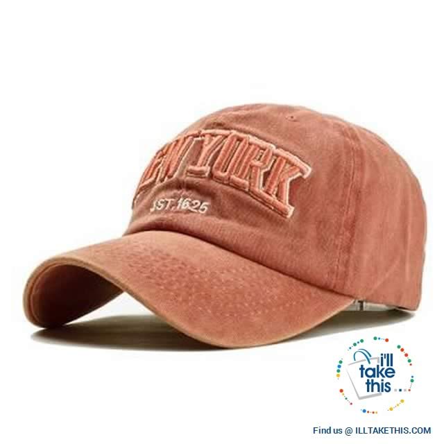New York embroidery Sand washed 100% cotton baseball caps, Unisex design Caps - 6 Colors