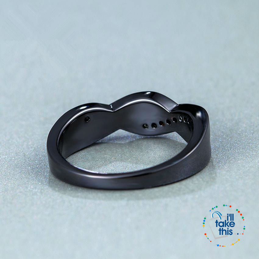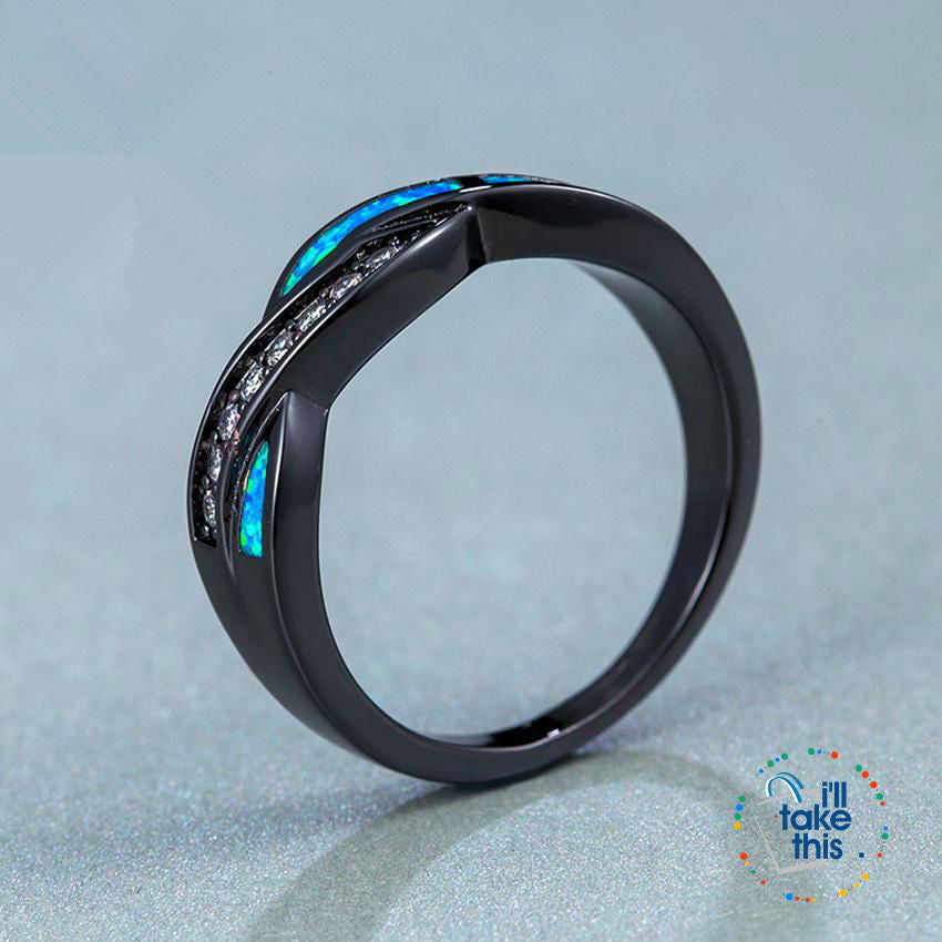 Black Gold Filled Rainbow RING, Romantic Colorful Accented with crystal studs & intertwined with premium Fire Blue Opal Cross Ring in 7 sizing options