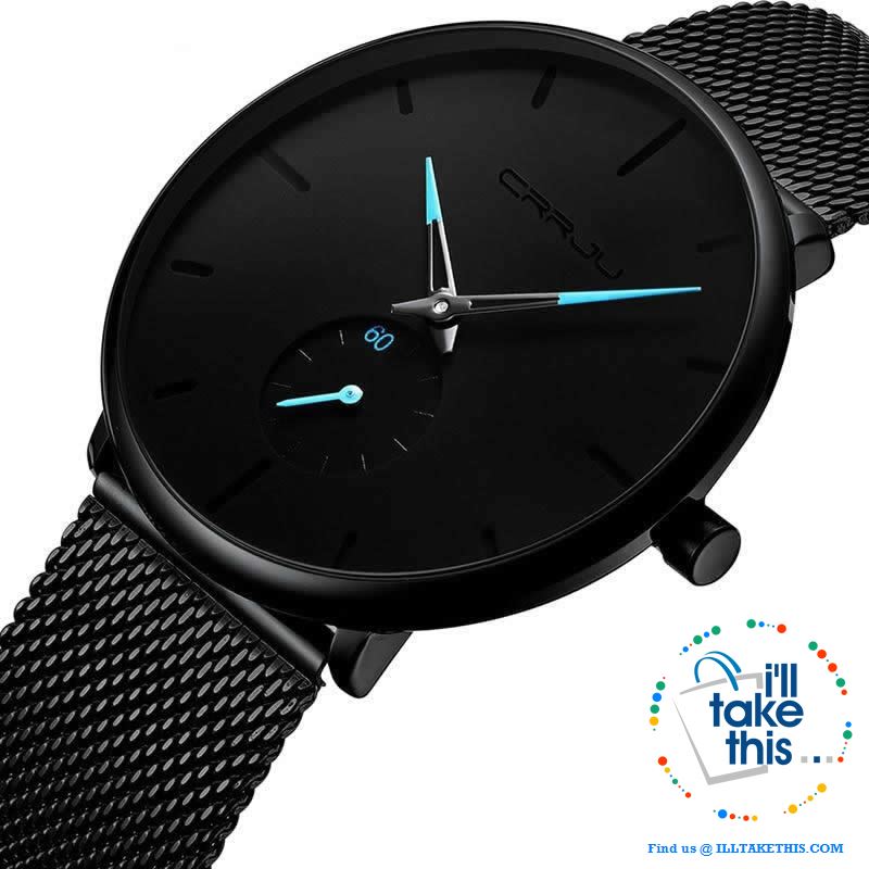 Our collection of Stunning watches are a shining example of a Great Water-resistant timepiece and with 3-time hand Colors options, wrapping your wrist in an all stainless steel mesh wrist bands we're sure you'll find that statement piece for you or a gift for that special him. π